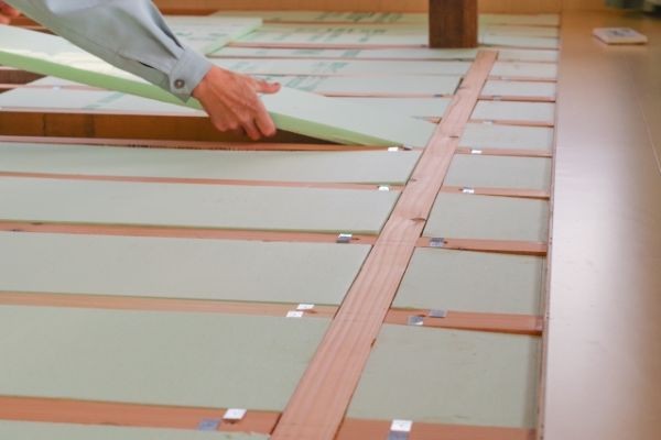 床の断熱はフローリングなどの床材を剥がさず床の下から断熱材を入れる方法か断熱材を吹き付ける方法のほか、床材を剥がして断熱材を設置する施工方法がありますので、現場調査をさせて頂き、ご予算ご希望により施工方法を決めていきましょう。